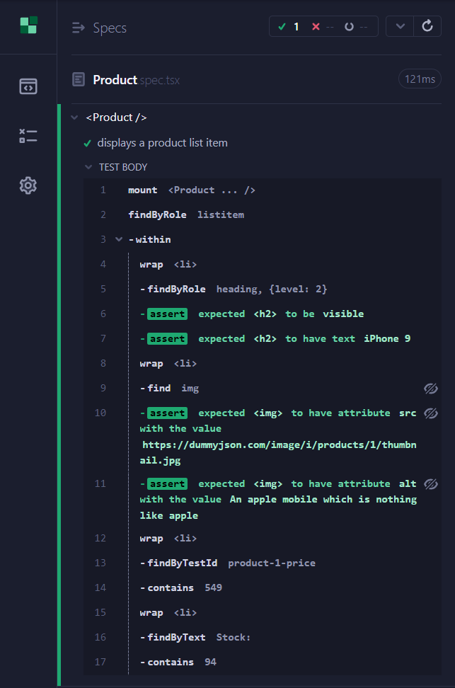 <ListProducts /> component. The first assumption we make in the test is that